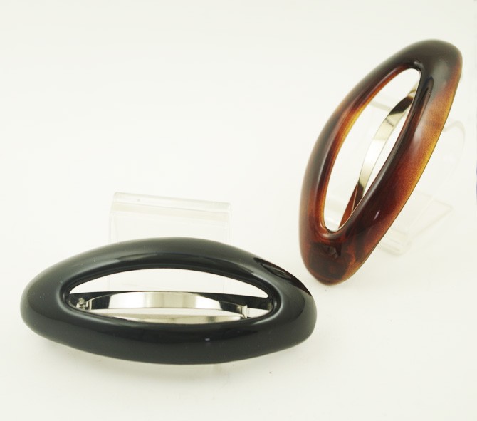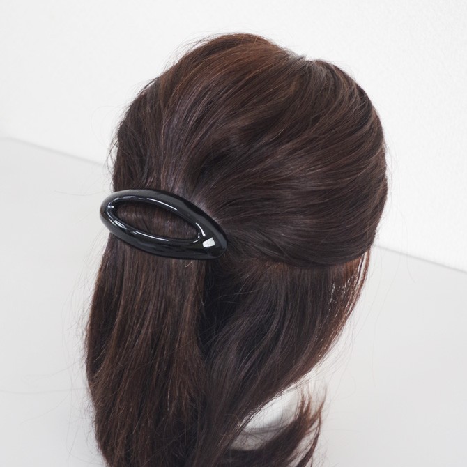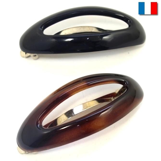 【残りブラックのみ】バレッタ オーバル 中抜き フランス製 ヘアアクセサリー シンプル 髪留め 楕円 髪どめ だ円 ヘアクリップ 無地 透かし