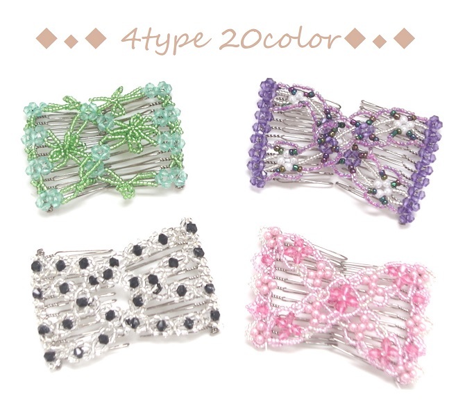 【新色入荷/4種類25色】ツインコーム ビーズ ツインデコ 小さめ〔ダブルコーム 夜会巻き まとめ髪 着物 和装 お団子 花 かんざし ヘアアレンジ〕