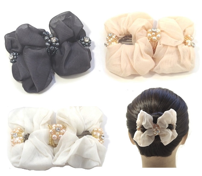 【新色入荷】ツインコーム オーガンジー ツインデコ 小さめ 〔ダブルコーム 夜会巻き まとめ髪 結婚式 パーティー 着物 和装 お団子 ヘアアレンジ 柔らか素材〕
