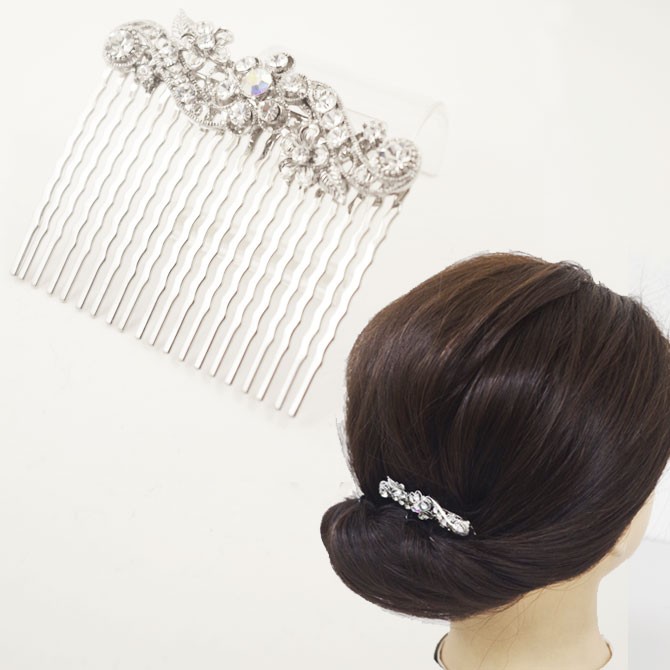 ワンポイントの飾りや、まとめ髪の補助やほつれ毛を留めたりできる金属製のコーム。