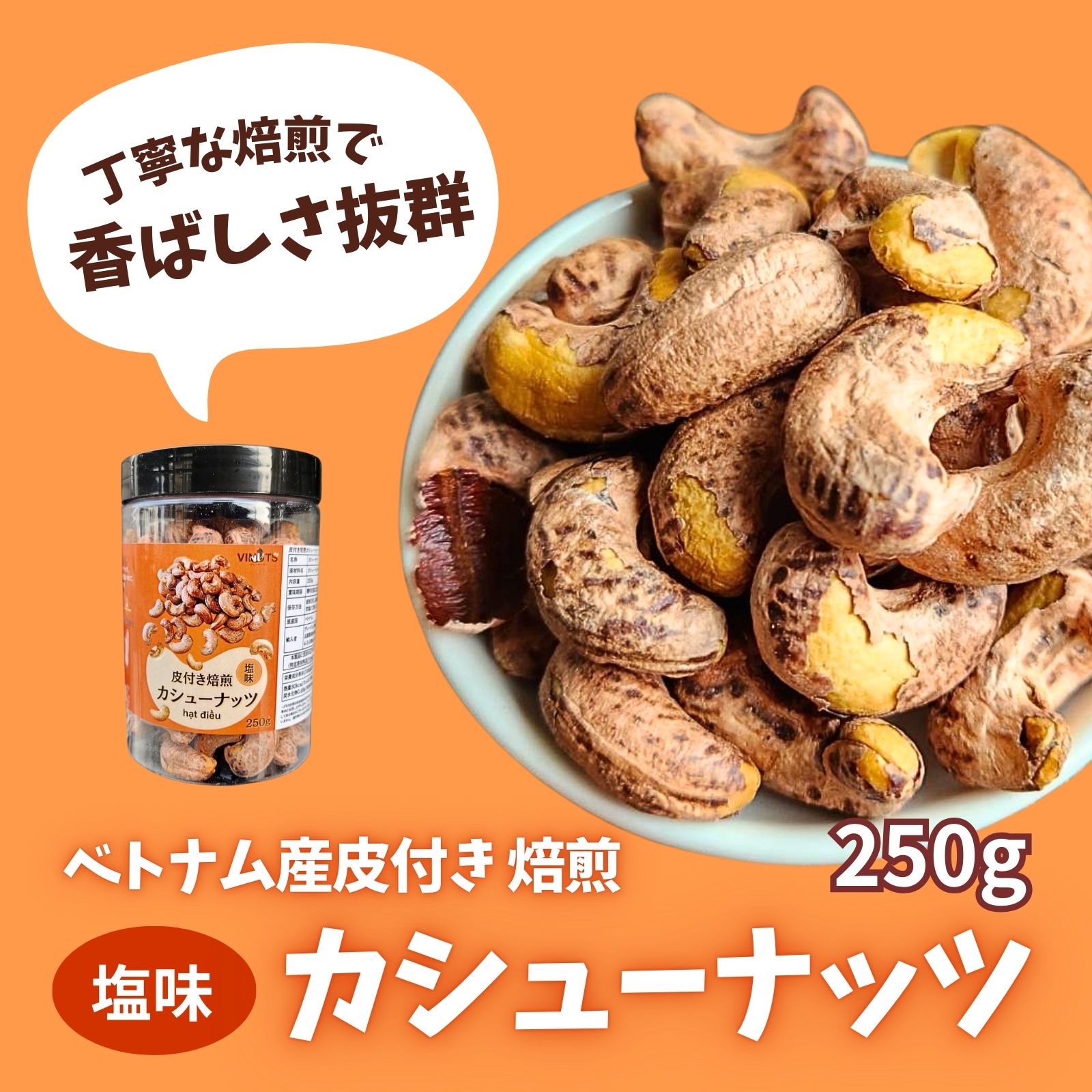 ベトナム産 皮付き 焙煎 カシューナッツ 添加物不使用 塩味 1箱(250g) VINUTS