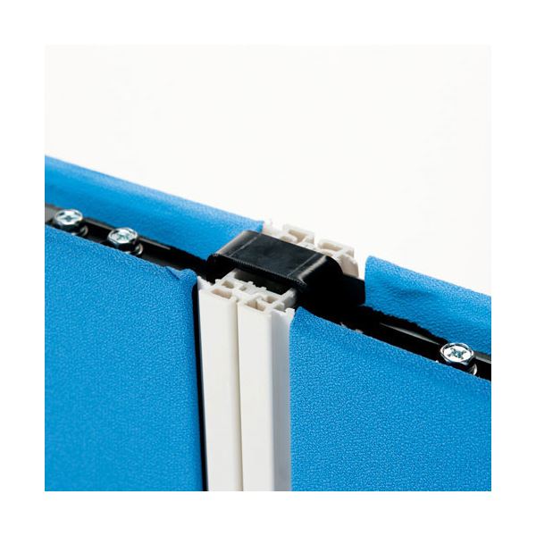 パネルの高さは1600、1825、2000mmの3種類。高さ違いの連結が可能で、ミーティング・応接スペースなど独立した空間が造れるローパーティション「JKパネル」パーツ。直線連結補強金具。パネル同士の連結を補強し、ずれにくくします。