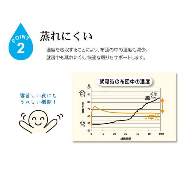 2.湿度の調整作用があり、蒸れにくく快適な就寝を促します。