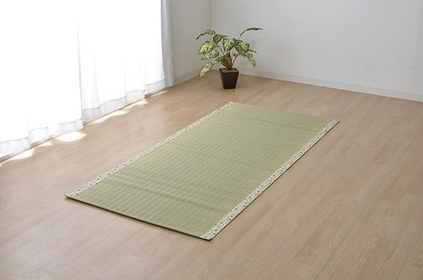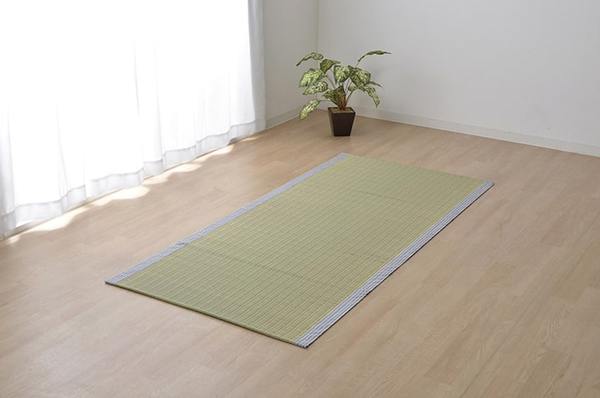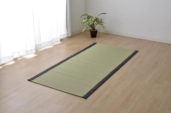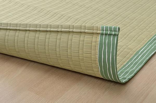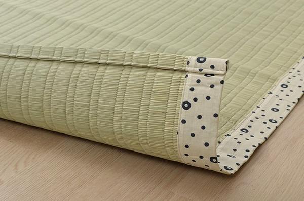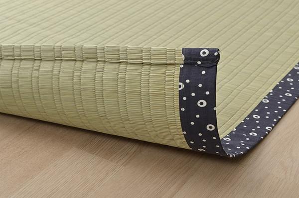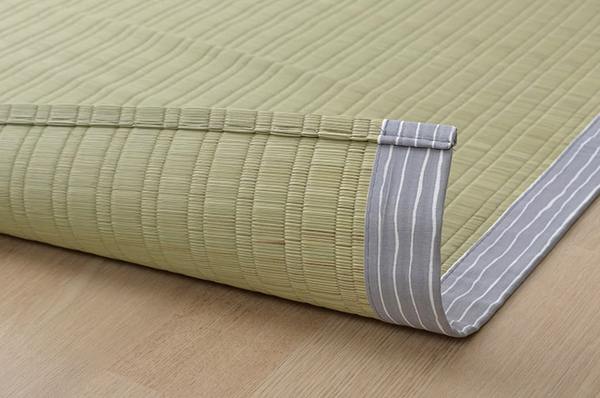 国産(熊本県八代産)のい草を使用したネゴザ(寝ござ)です。国産のイ草は一本一本が太く、表皮が厚く繊維がキメ細かいので、弾力性があり、耐久性に優れています。