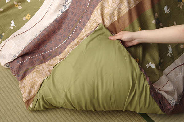 明るいうさぎ柄のファスナー付きコタツ掛けカバーです。洗濯機で洗えるので清潔にご使用できます。