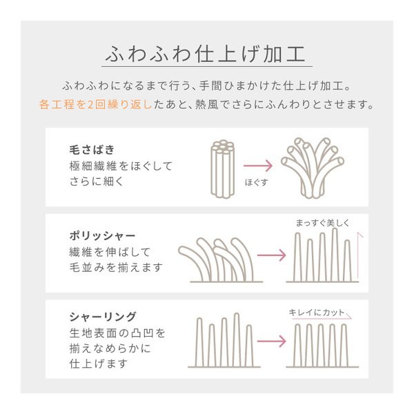 2枚合わせ毛布に中綿を加え、さらに裏面までをも起毛させる事で暖かい空気をより多く含み、保温力をアップさせたあったかさ抜群のボリュームたっぷりな毛布です。