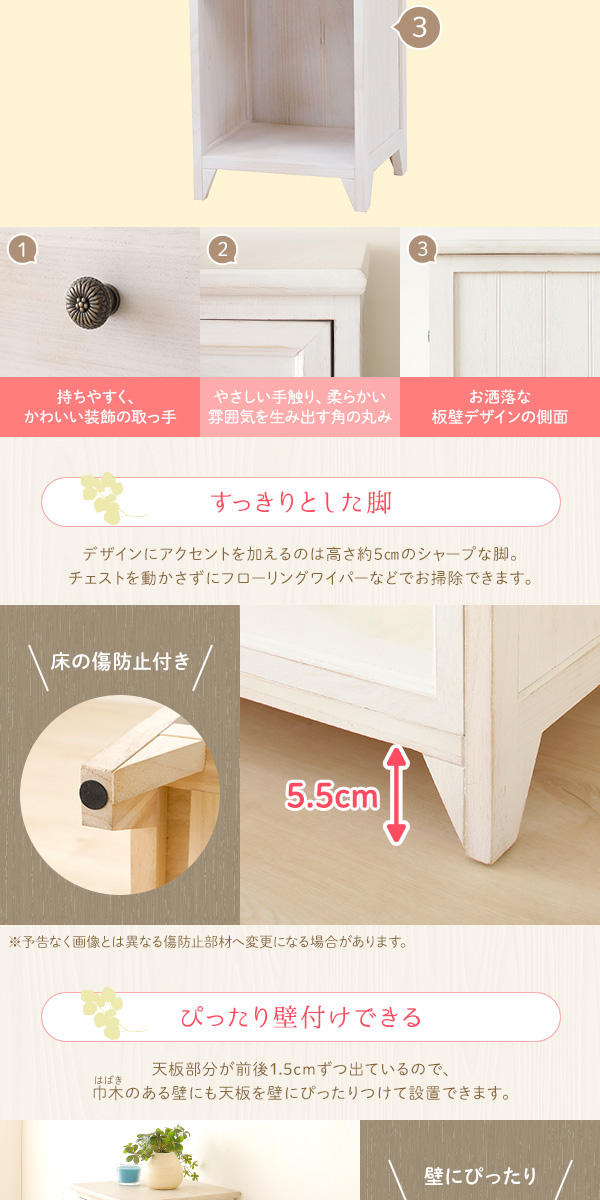 サイドボード サイドチェスト 幅35cm シャビーホワイト 木製 桐製 軽量 Rural ルーラル 完成品 リビング ダイニング爆買