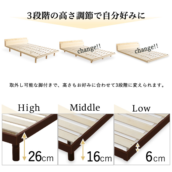 3段階に高さを調節できる宮セット脚付きすのこベッド。