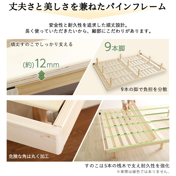北欧産パインフレームを使用した、通気性と耐久性に優れた頑丈設計。