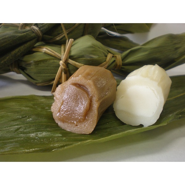 スゲまたはイグサの紐で両端を絞り中央で結んで蒸した、