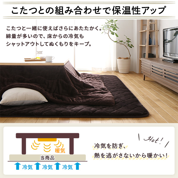 こたつと一緒に使えばさらにあたたく。綿量が多いので、床からの冷気も