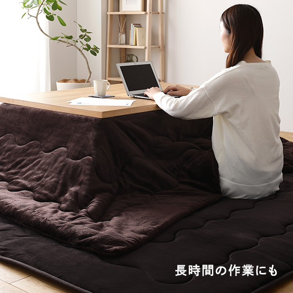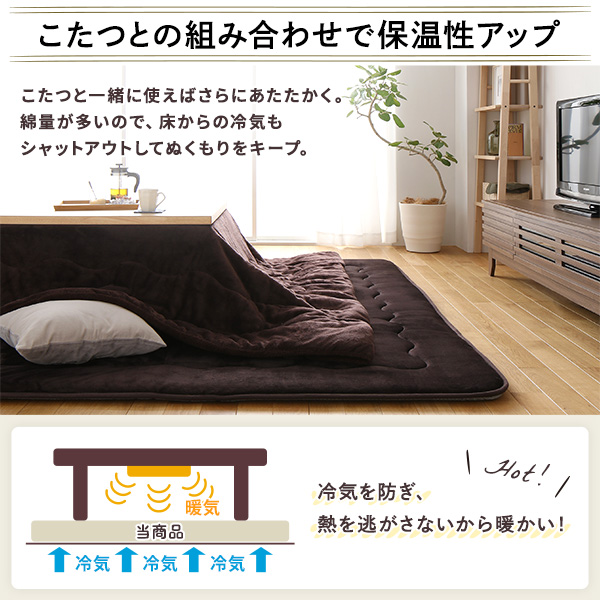 こたつと一緒に使えばさらにあたたく。綿量が多いので、床からの冷気も
