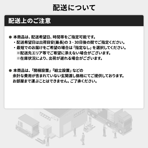 ・配送希望日は出荷目安(最長)の 3 - 30 日後の間でご指定ください。