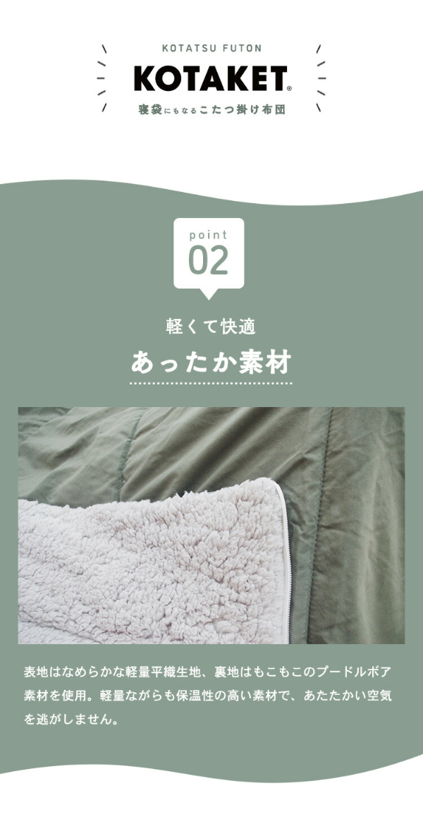 寝袋にもなる こたつ掛け布団