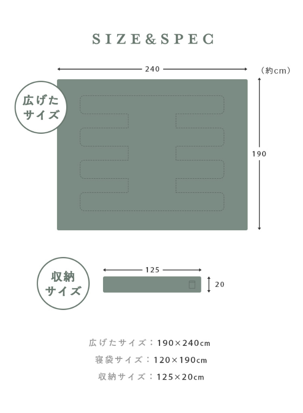 ■正方形 約190×190cm グレー■正方形 約190×190cm カーキ■長方形 約190×240cm グレー[当ページ]