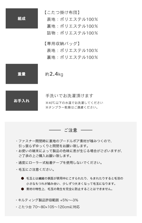 (70〜80×105〜120cmのこたつ台に対応)