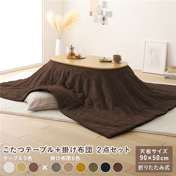 こたつ 2点セット 約幅90cm ナチュラル×ブラウン 楕円形 折りたたみ こたつテーブル こたつ掛け布団 完成品 業務用 まとめ買い