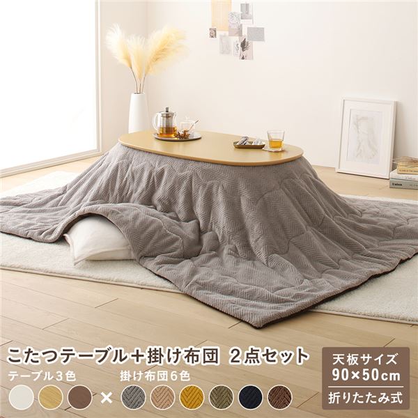こたつ 2点セット 約幅90cm ナチュラル×グレー 楕円形 折りたたみ こたつテーブル こたつ掛け布団 完成品 業務用 まとめ買い