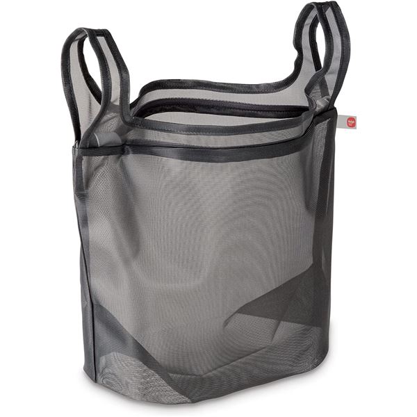 レジ袋のような持ち手がついて、仕分けにも持ち運びにも便利な洗濯ネット。ドラム式洗濯機・乾燥機可。