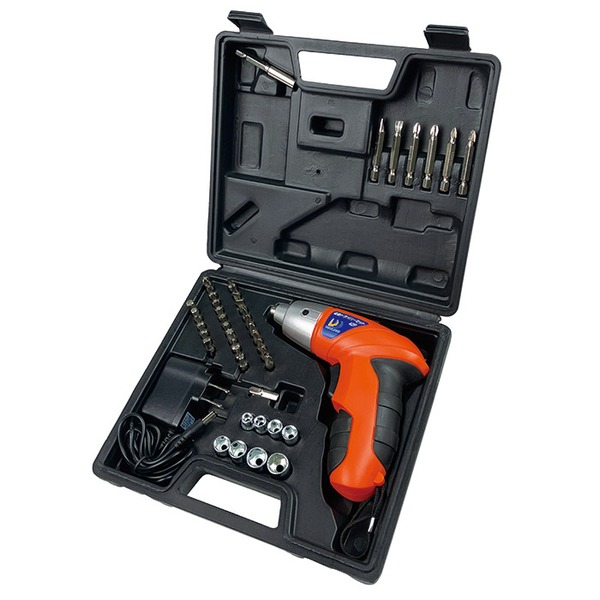 最近流行になっている電動工具類。DIY女子の間でもその使いやすさと力要らずという点で人気のアイテムとなってます。ただ、本格的に揃えるとなると大変高額になったり、何を揃えていいのか迷ったりと、購入前に悩んで困っている人も多いハズです。本製品は、基本的なネジを「締める」「ゆるめる」電動ドライバーのフルセットで、コンパクトながら充電式のコードレスタイプです。プラス・マイナス・六角・四角・星形レンチ・六角ナットなど、先端工具が専用収納ケースに収まったフルセットになってます。先端工具はマグネット式で取付け交換がカンタンなタイプ。ドライバーの回転方向(締める・ゆるめる)の切替えもワンタッチでできます。