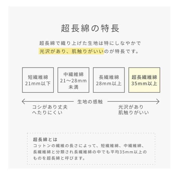 綿100%超長綿使用。高密度サテン織。きめ細やかで滑らかな肌触り。着脱簡単な幅広い適用サイズ。(厚み3cmから30cmまで対応)