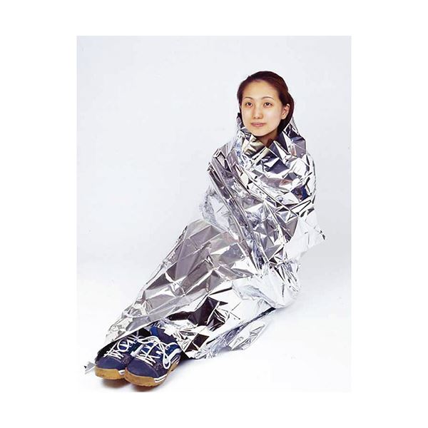 宇宙服素材を使用した、様々なシーンで活用可能な防災グッズ。ポケットティッシュサイズで場所をとらず、持出袋やハンドバッグ゛にも入ります。毛布のように体に巻いて防寒でき、カーテンやタープのようにかざして防暑としても使用できます。また、ねじって簡易のロープとして使用したり、急な雨天に雨具替わりなどのいろいろな用途で活躍できます。