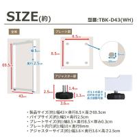 (約)幅43×奥行8.5×高さ69.5cm (付属アジャスター含む)、スチールパイプサイズ(約)幅5×奥行2.5cm、アジャスターサイズ(約):幅3.6×奥行3.6×高さ2.5cm、取付部プレートサイズ(約)幅8.5×奥行8.5×厚み0.3cm、プレート内穴サイズ(約)幅1×奥行0.8cm(楕円形)