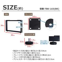 (約)幅63×奥行8.5×高さ34cm (付属アジャスター含む)、スチールパイプサイズ(約)幅5×奥行2.5cm、アジャスターサイズ(約):幅3.6×奥行3.6×高さ2.5cm、取付部プレートサイズ(約)幅8.5×奥行8.5×厚み0.3cm、プレート内穴サイズ(約)幅1×奥行0.8cm(楕円形)