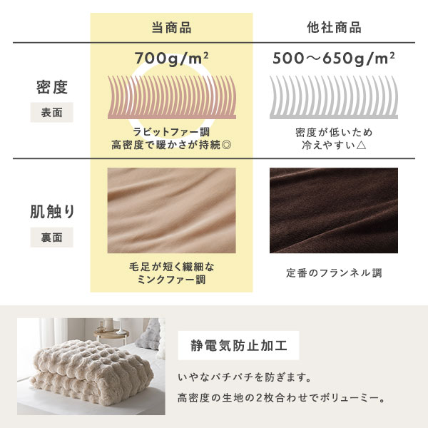 密度(表面):ラビットファー調 高密度で暖かさが持続◎