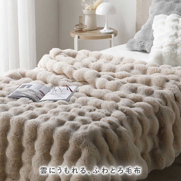 【商品名】ポコポコふんわり ブランケット 約70×100cm ベージュ 2枚合わせ 洗える ひざ掛け 膝掛け 毛布 ラビットファー調 リビング 寝具 業務用 ま まとめ買い 【カテゴリ】ブランケット 【仕様】2枚