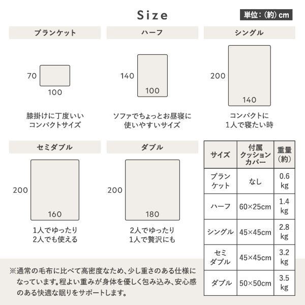 ※通常の毛布に比べて高密度なため、少し重さのある仕様になっています。
