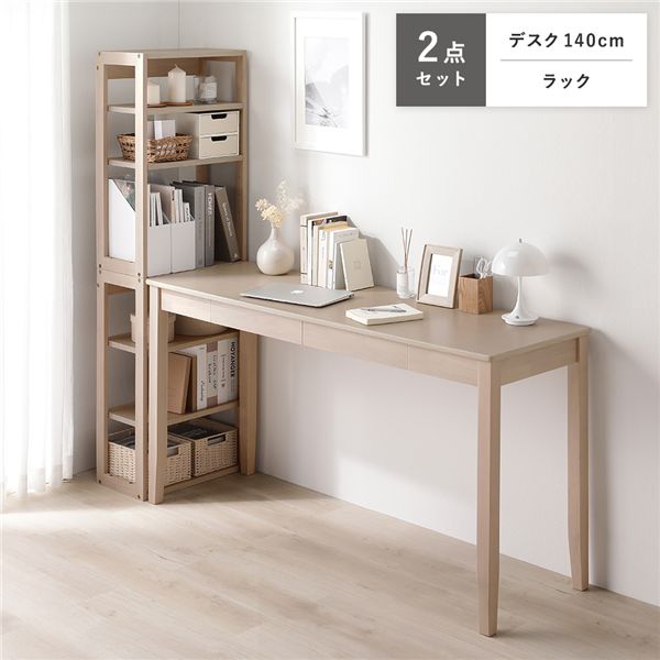 【商品名】天然木 デスクシリーズ 2点セット デスク 140cm幅 + ラック ラテホワイト デスクセット 学習机 引出し付き 業務用 まとめ買い 爆買 【カテゴリ】机・デスク・デスクターナ