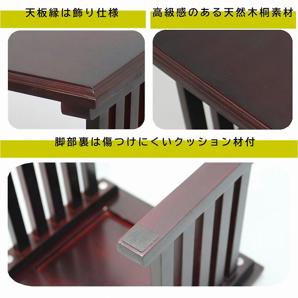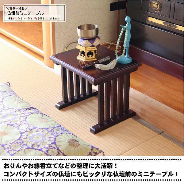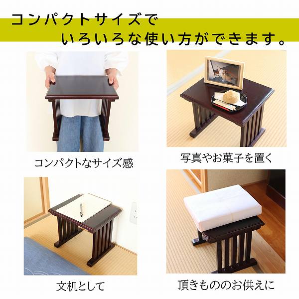 おりんやお線香立てなどの置き場に大活躍。お供え置きに、文机としても。