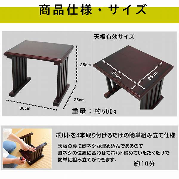【商品名】仏壇前ミニテーブル 組立式 【カテゴリ】生活用品・インテリア・雑貨 > インテリア・家具 > 机・デスク・デスクターナ 【特徴】仏壇前ミニテーブル 組立式