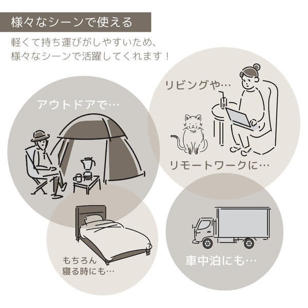 二枚合わせ毛布と同等のボリューム感を持ちながら重さは約半分!