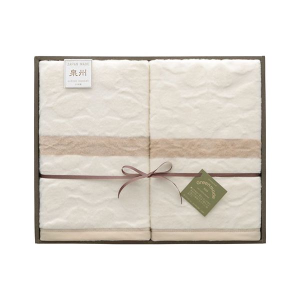 エンボスの立体的なリーフ柄のナチュラルデザインの綿毛布です。