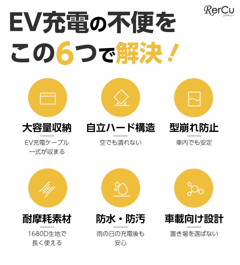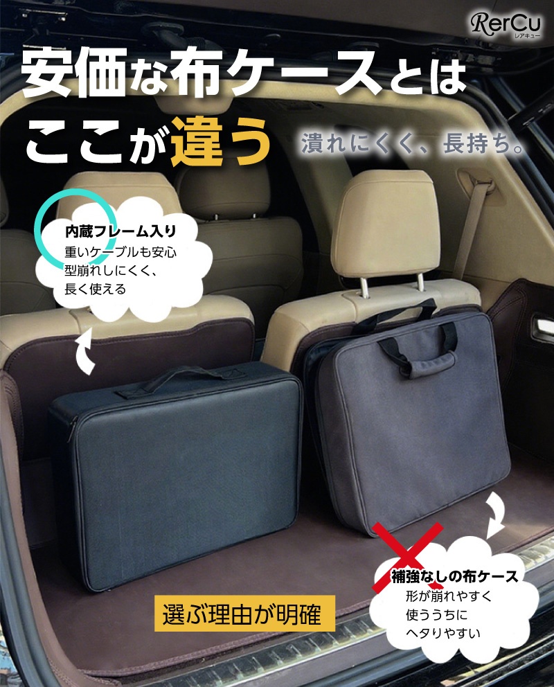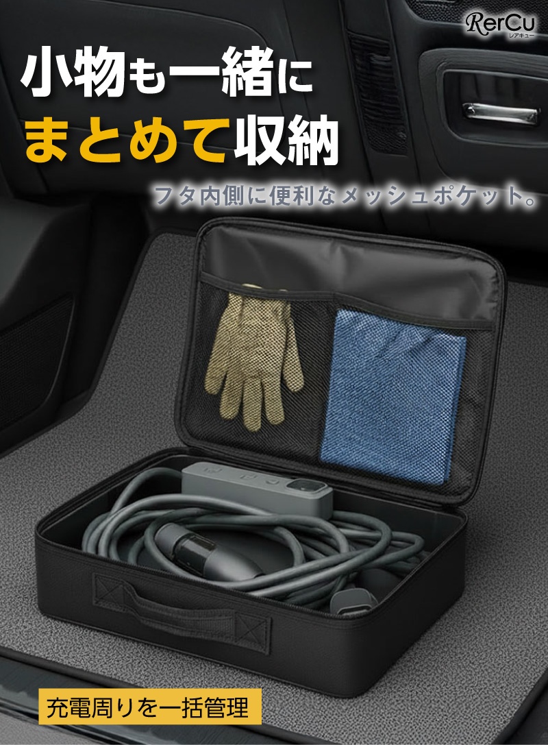 | 店長の一言 | EV充電ケーブルを車内でスマートに保管できる、車載用収納ケースです。 立体構造で型崩れしにくく、充電ケーブルや付属品をまとめて収納できます。 ■ 小体積・大容量設計 見た目はコンパクトながら、EV充電ケーブル一式が収まるサイズ感。 トランクや車内の隙間にも置きやすく、すっきり整理できます。 ■ 防振・耐圧ボディ 内部にEVA内張りを採用し、外部からの衝撃を軽減。 車載時でも安心してご使用いただけます。 ■ 三層1680Dオックスフォード素材 耐摩耗性に優れた1680D生地を使用。 防水性があり、汚れも拭き取りやすい仕様です。 ■ 車内使用に配慮した素材 車内での使用を想定し、匂いが気になりにくい素材を採用しています。 ■ 持ち運びしやすい手提げタイプ ハンドル付きで、充電時や自宅保管時の持ち運びにも便利です。 |