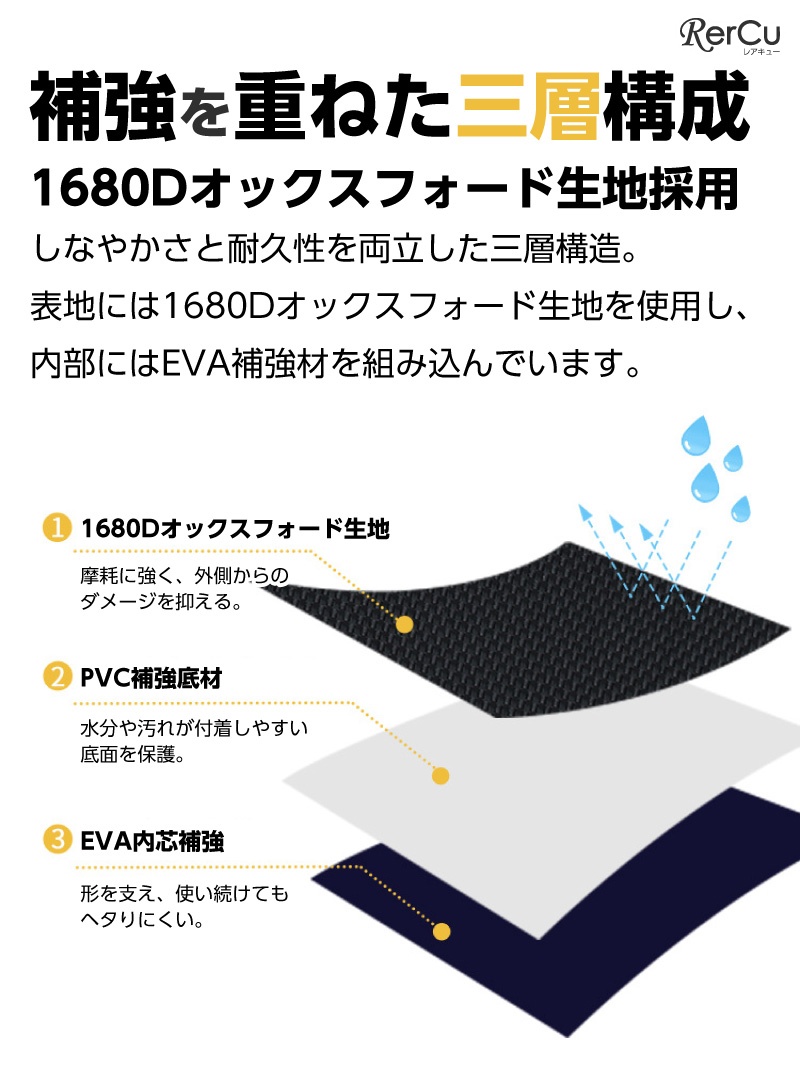 | 素材/材質 | 1680D 双股オックスフォード生地 (EVA内張り+PVC底板) |