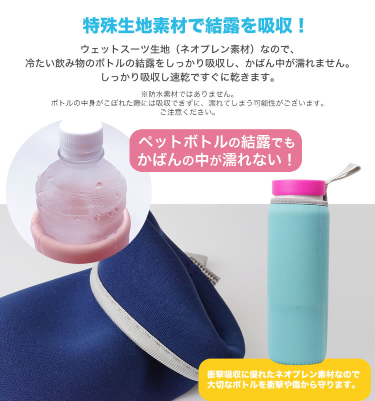 冷たい飲み物のボトルの結露をしっかり吸収し、かばん中が濡れません。