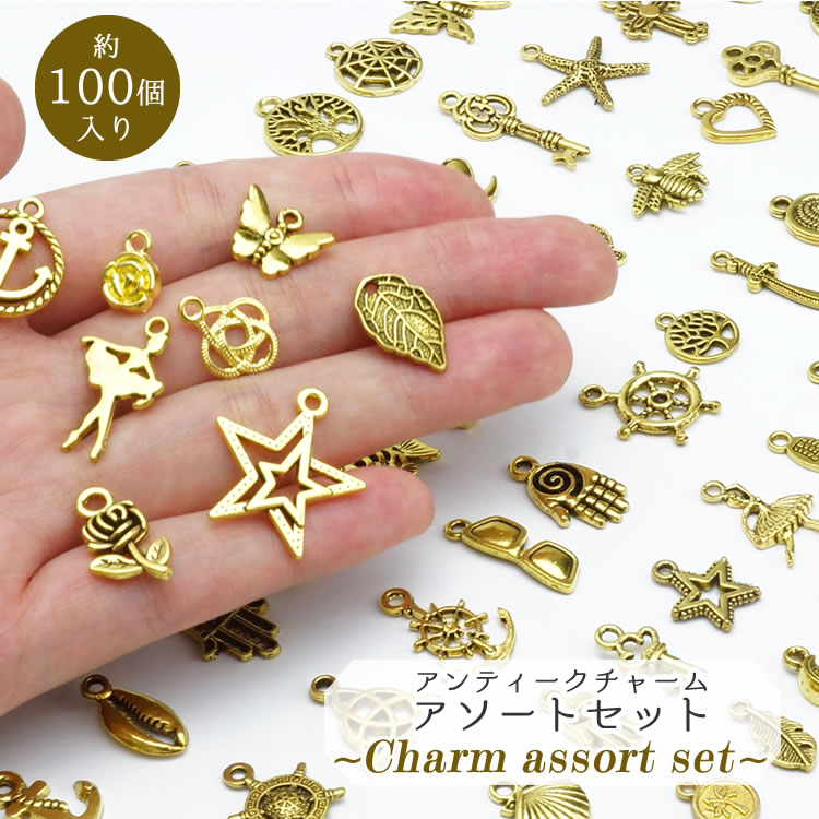 キーホルダーやアクセサリーまで、幅広く使えるカン付チャームがたっぷり100個入り!!