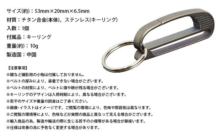 材質:チタン合金(本体)、ステンレス(キーリング)