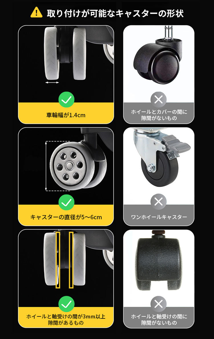 キャスターの耐久性があがり、キャリーケースも長持ちします 。