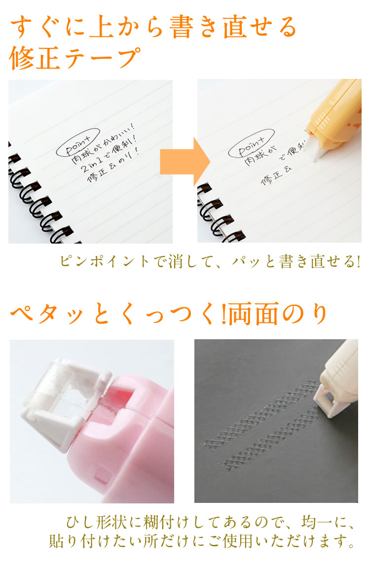 ・すぐに上から書き直せる修正テープ