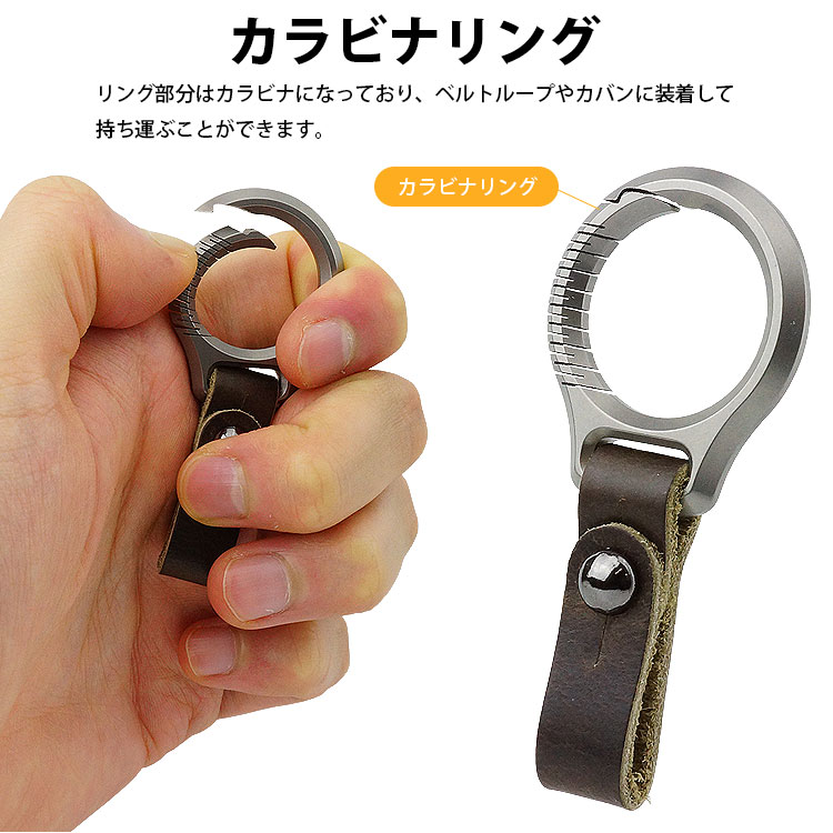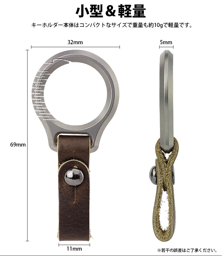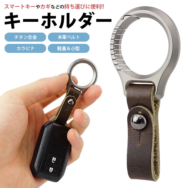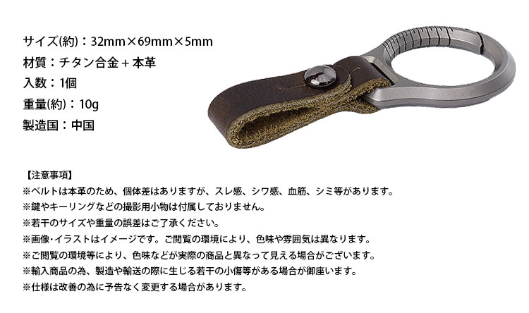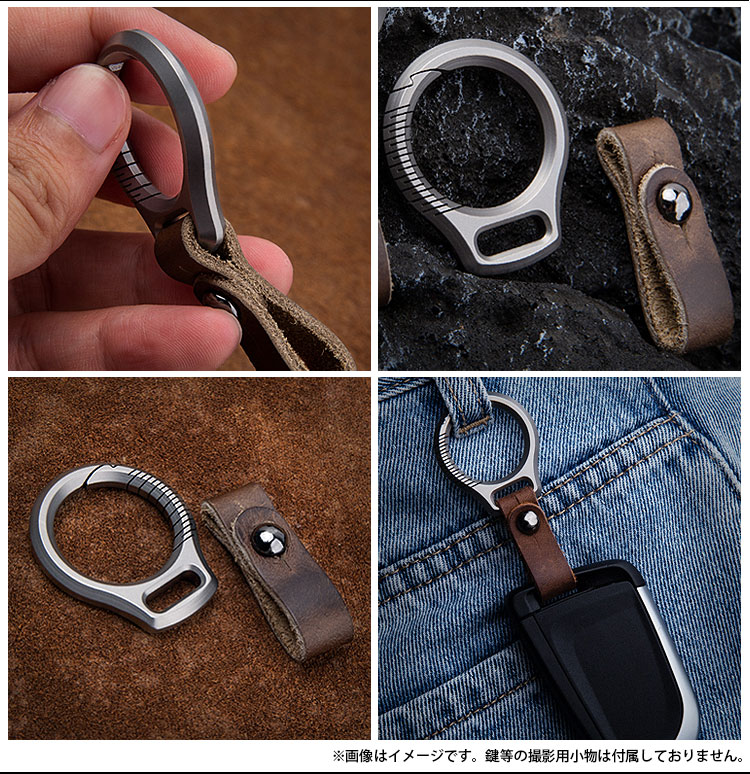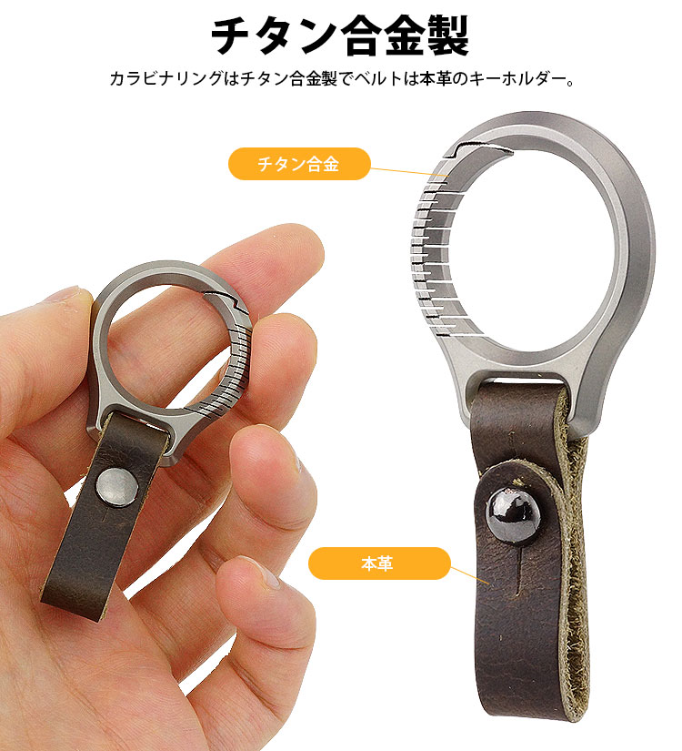 カラビナリングはチタン合金製でベルトは本革のキーホルダー。