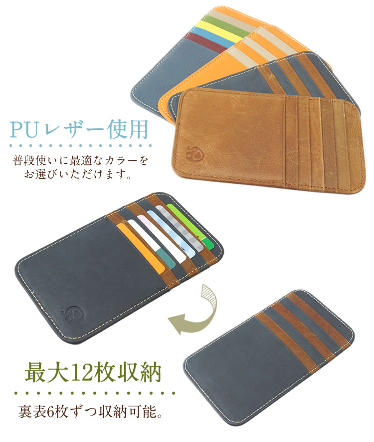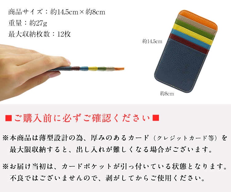 ※本商品は薄型設計の為、厚みのあるカード(クレジットカード等)を最大限収納すると、