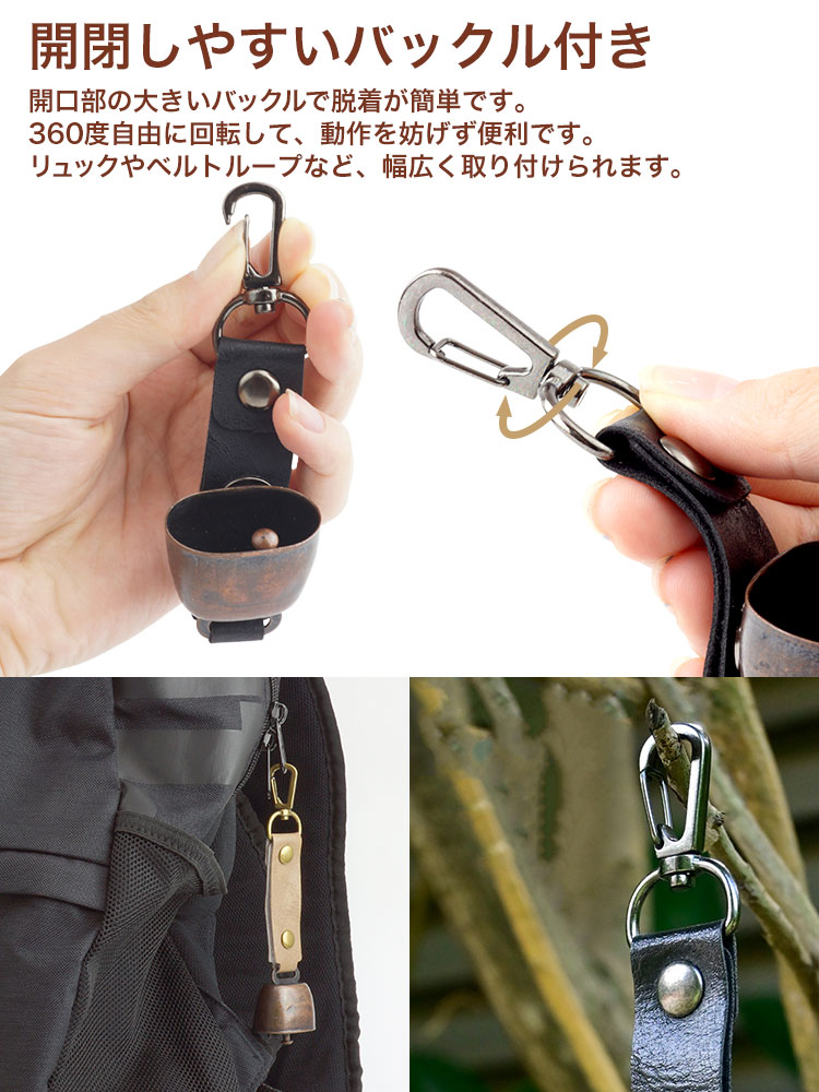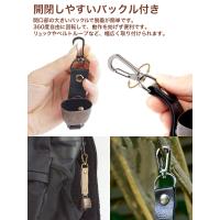 カラビナ搭載でバックパックやベルトループに取り付け可能。