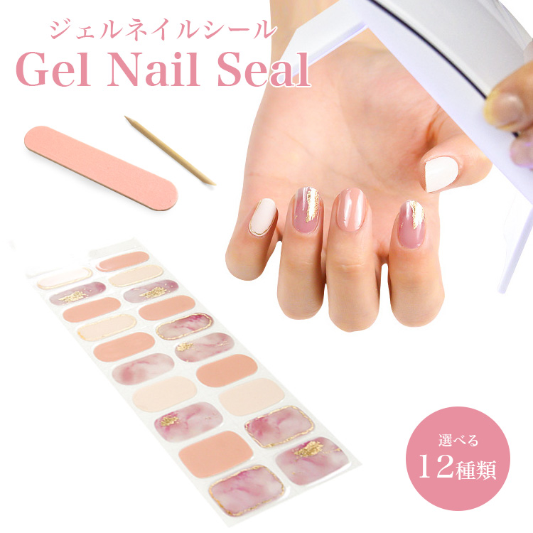 ジェルネイルシール 20枚セット ネイルシール ネイルステッカー デコネイル セルフ 貼る ウッドスティック 爪やすり デザイン ジェル ネイル プチプラ 簡単