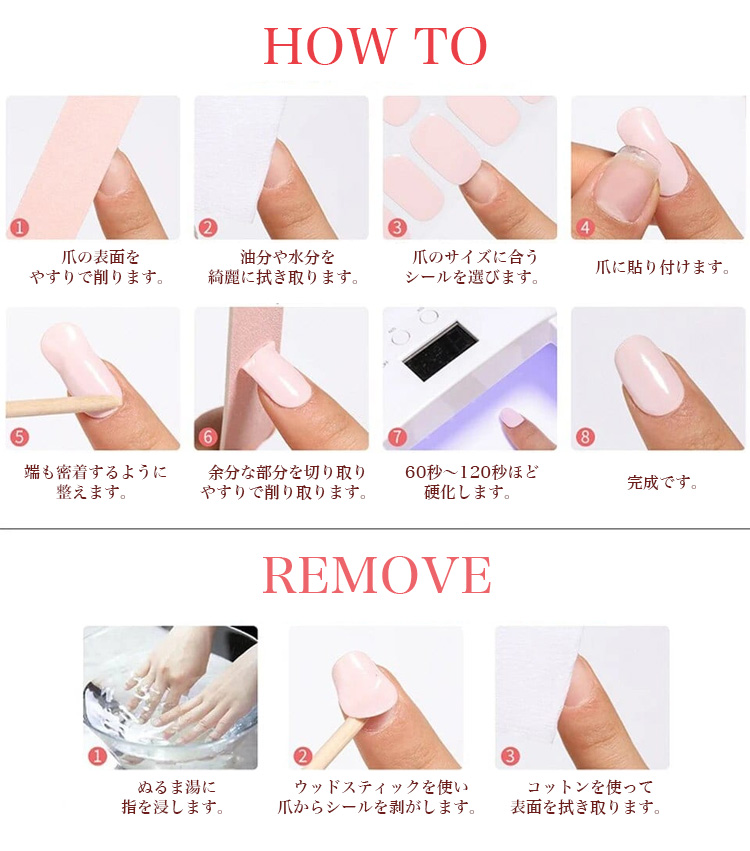 貼って硬化するだけで簡単にお洒落を楽しめるジェルネイルシール。