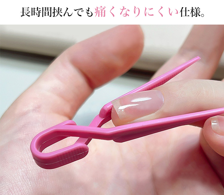 長時間挟んでも痛くなりにくいので、セルフネイルにもぴったりなアイテムです。