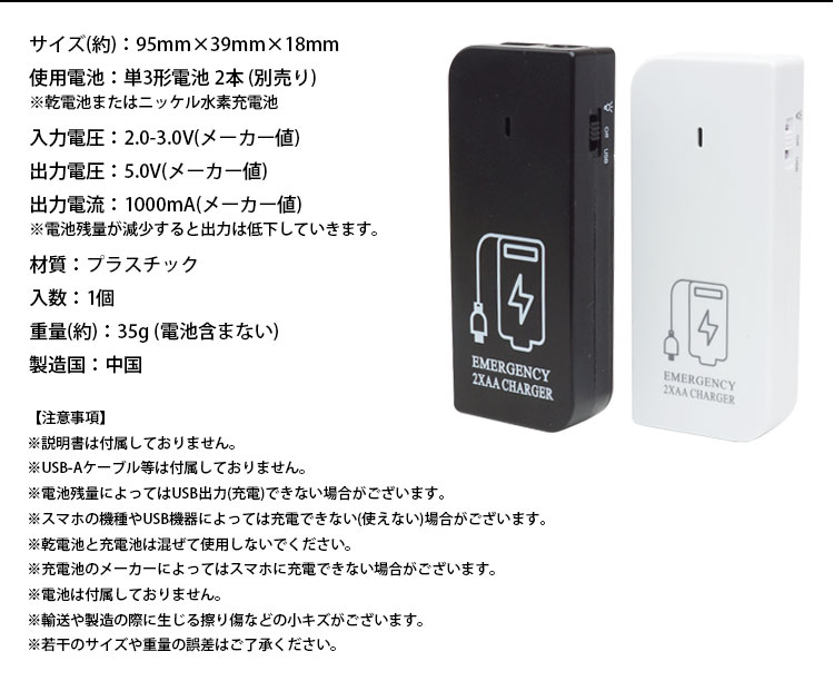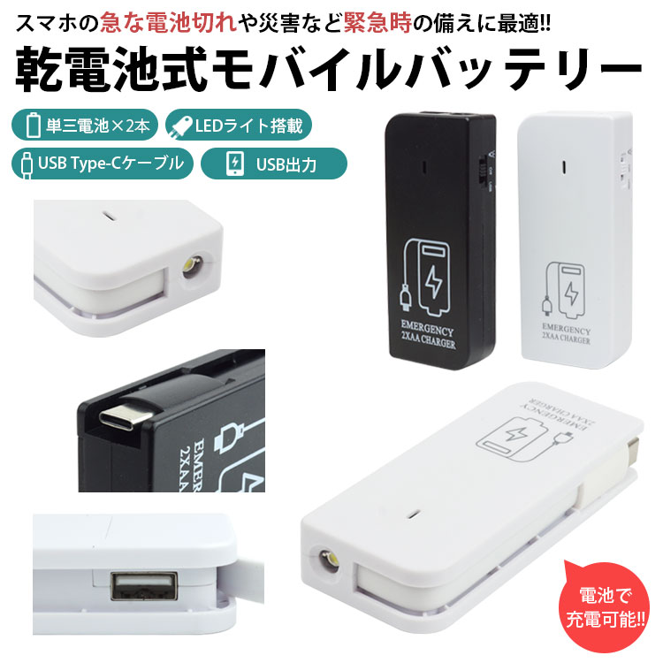 単三電池×2本でスマホやUSB機器を充電することができる電池式モバイルバッテリー